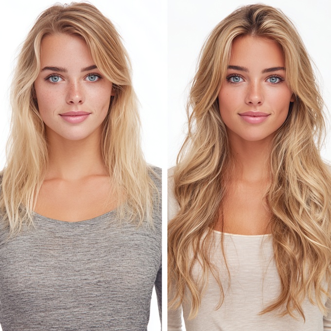 Bei Kontakt der (blonden) Extensions mit Sonnenschutz und/oder Bräunungsöl in Verbindung mit Sonne können diese sich Orange verfärben! Keine Panik, wir haben eine Anti-Orange-Kur für Dich entwickelt und sollte bei der ersten Verfärbung direkt angewendet werden.